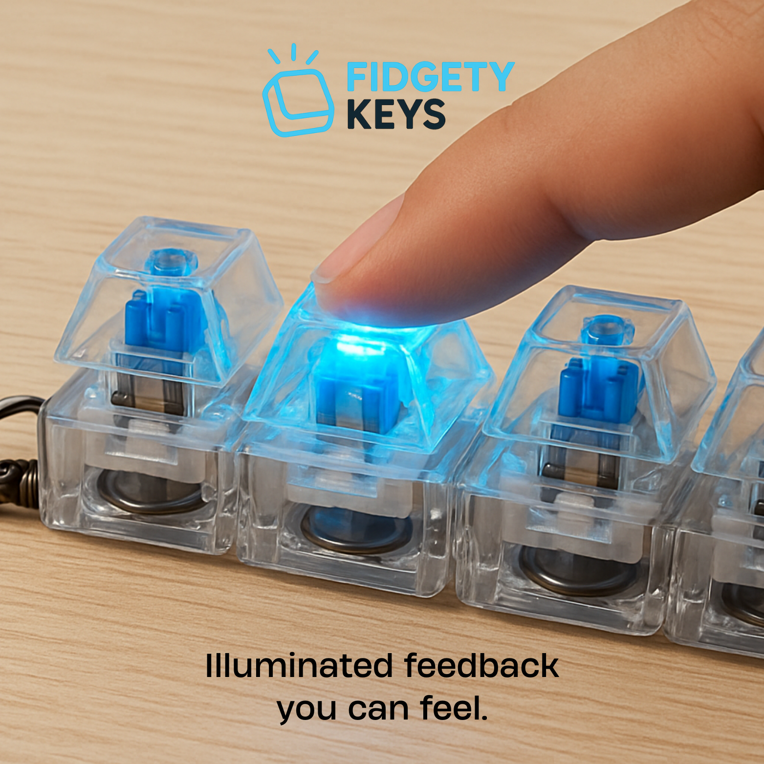 Fidgety Keys™ uses real keycaps and internal switches modeled after full-size keyboards, giving you that professional-grade click in every press.